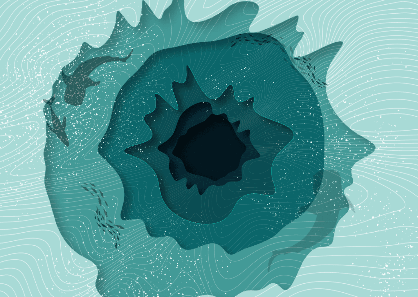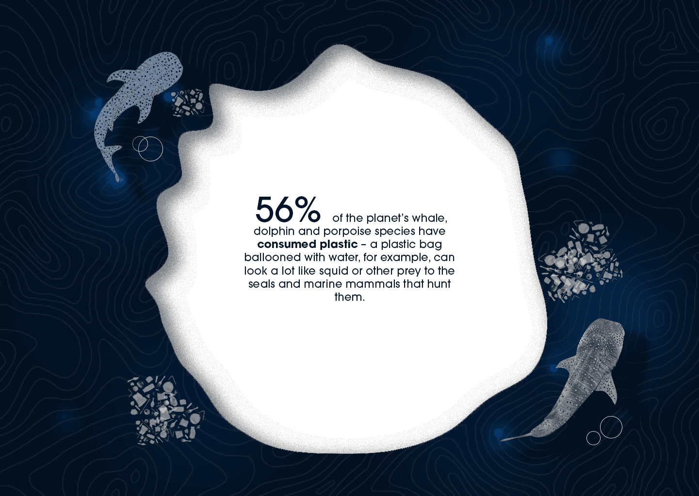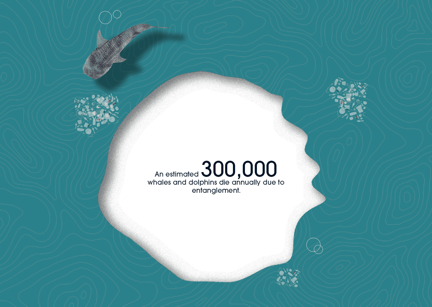 where the outline of the sea topography is inspired by whale sound recordings. Illustrations of whales with plastic can also be seen demonstrating the message clearly.